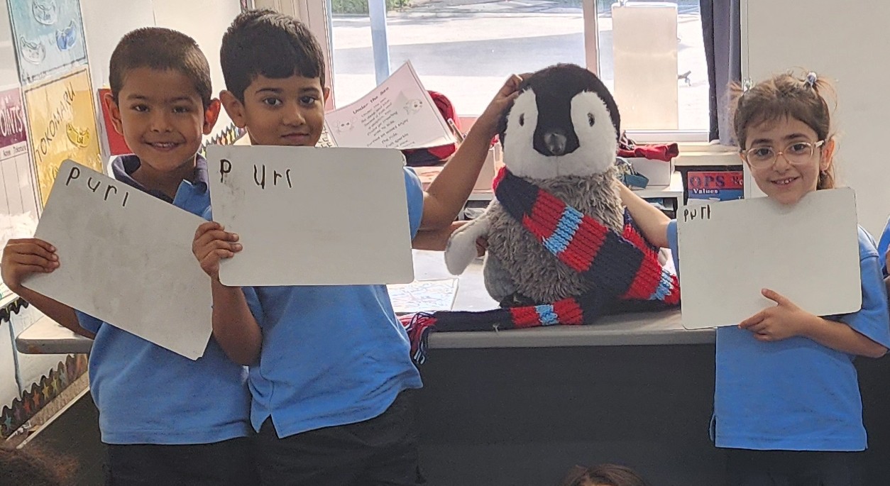 Currently in Room 2, Purl has been learning about the first sound of her name, and the students are really helpful when she forgets. It can also be a bit tricky saying and sounding out the letter P with a beak. Purl has had to sit quietly while the students sketch and labelled her during writing time. Being a penguin, Purl absolutely wishes that she could go swimming, however she enjoys a good nap when it is quiet and peaceful.